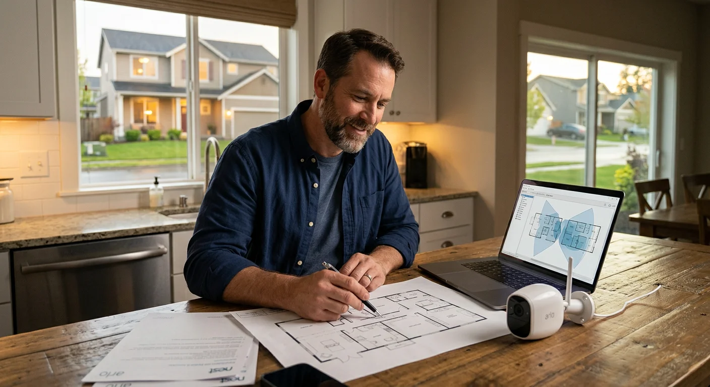 Kezdd otthonod alaprajzával. Járj végig minden külső ajtón, földszinti ablakon és minden eddig figyelmen kívül hagyott gyenge ponton. Ez a lépés fontosabb, mint a választott márka. Egy átlagos otthonhoz 4-8 beléptető érzékelő, 2-4 mozgásérzékelő és 2-6 kamera szükséges a teljes lefedettséghez. A legtöbb 2,000 négyzetméteres otthon esetében egy 6 kamerás beállítás reális alap.