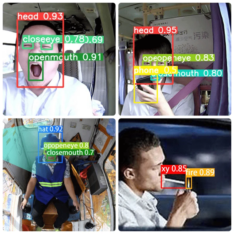 Fatigue Driving, Smoking, Phone Call, and Flame Detection