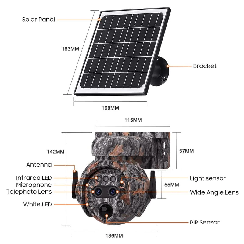 Equipped with a PIR detection range of 0–10 meters and an 85° detection angle, this trail cameras with solar panels model can identify human movement and automatically track targets. When motion is detected, the camera sends instant alarm notifications through the UBox app, making it suitable for remote cabins, construction sites, and backyard surveillance.