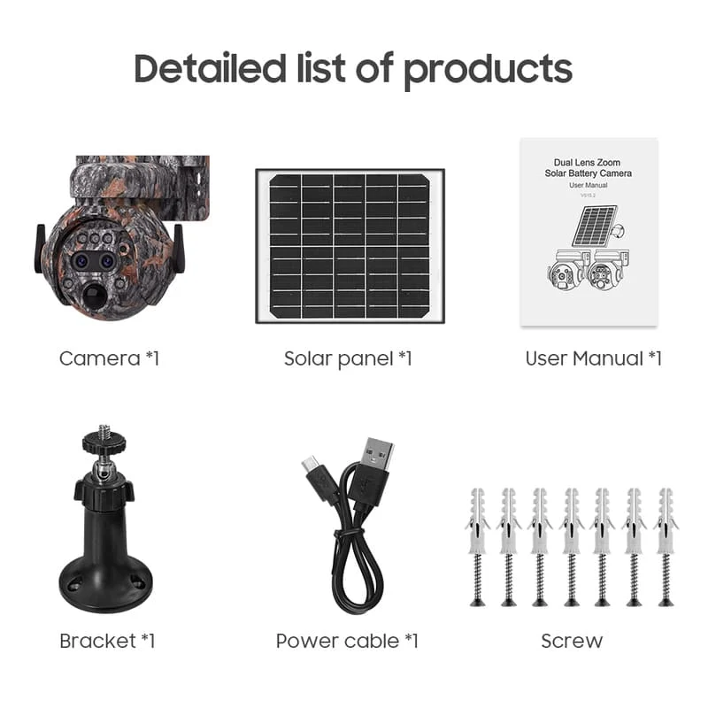 ST-S515 is one of the most advanced trail cameras with solar panels, featuring a dual-lens system (4mm + 12mm) and 12x manual zoom. Users can clearly view subjects within 50 meters, making it ideal for wildlife tracking, home security, and farm monitoring. With a pixel resolution of 2304×1296 + 2304×1296 and an 85° viewing angle, it provides detailed imaging across wide outdoor spaces.