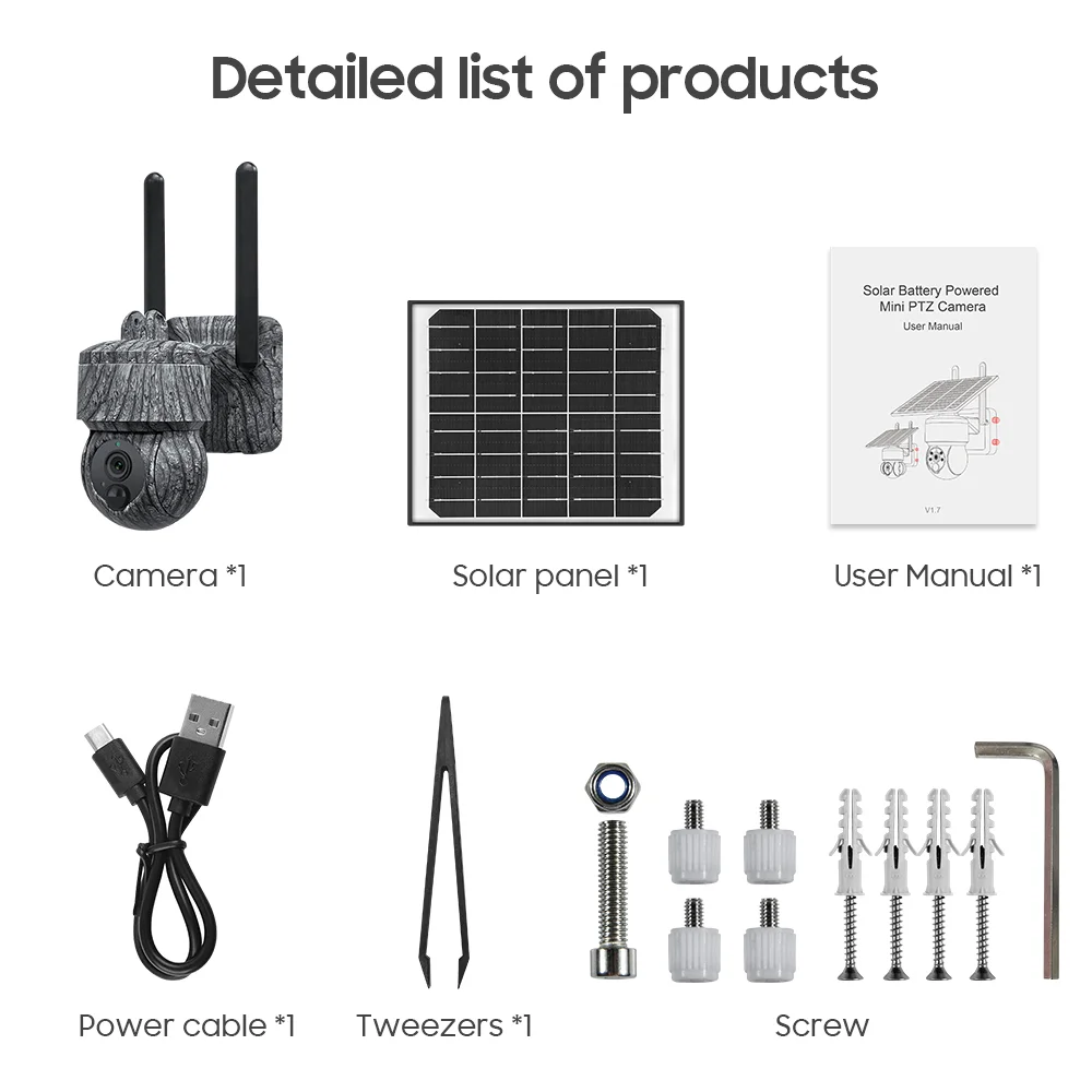 This solar powered cellular trail camera includes PIR human detection with a wake-up range of up to 7 meters. Its infrared night vision provides an effective distance of 15 meters, ensuring clear images in low-light environments without disturbing animals. The PTZ structure allows users to remotely control viewing angles through the UBox app, making it suitable for forest paths, remote cabins, and outdoor security areas.